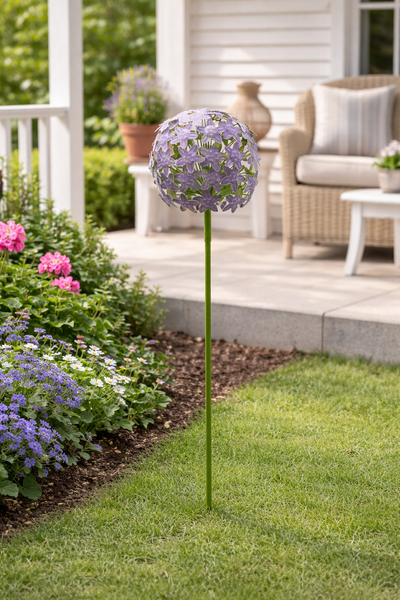 Metall Allium Gartenstecker lila. Besonders dekorativ in der Gruppe.