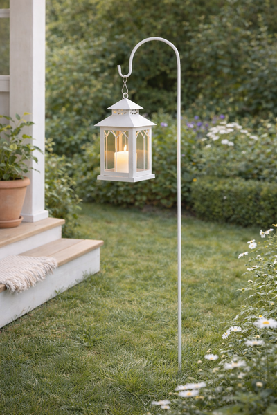 Der weiße Metallstab mit Haken ist ein vielseitig einsetzbarer Rank- und Hirtenstab für Garten, Terrasse oder Balkon. Durch sein schlichtes, zeitloses Design fügt er sich harmonisch in jede Umgebung ein und setzt dekorative Akzente. Der stabile Metallstab eignet sich ideal zum Aufhängen von Laternen, Pflanzgefäßen, Windspielen oder saisonaler Dekoration. Dank der robusten Ausführung ist der Stab sowohl für den Innen- als auch den Außenbereich geeignet und bietet eine langlebige Lösung für kreative Dekorationsideen.