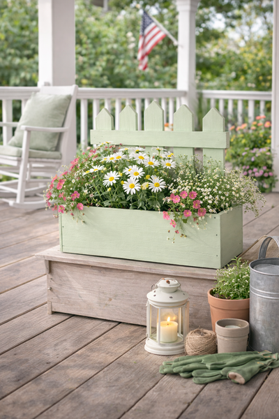 Dieser dekorative Holz-Pflanzkasten in Zaun-Optik ist ein echter Blickfang für Haus und Garten. Die grüne Farbgebung in Kombination mit dem charmanten Zaun-Design verleiht dem Pflanzkasten einen liebevollen Landhaus-Charakter.