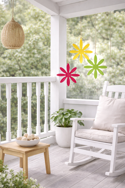 Die Metall Blume zum Hängen bringt frische Farbe und moderne Leichtigkeit in dein Zuhause. Mit ihrem klaren Blüten-Design und den fröhlichen Farben Pink, Gelb und Grün setzt sie stilvolle Akzente im Wohnbereich, am Fenster oder auf Balkon und Terrasse.