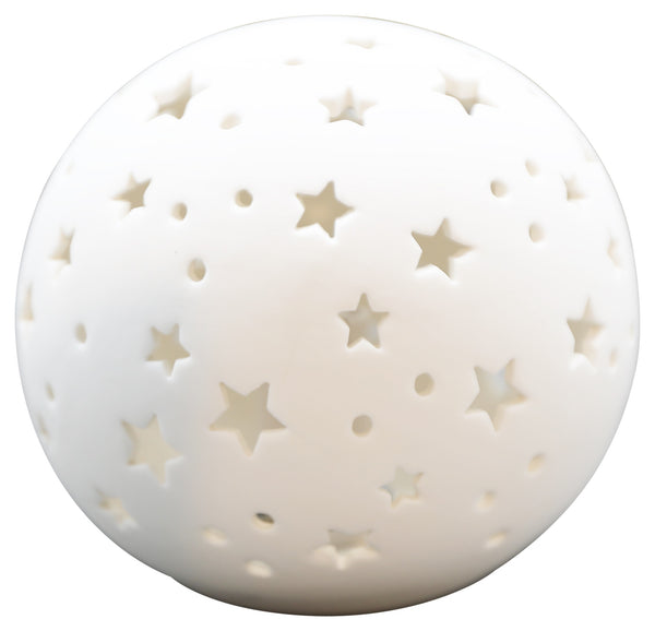 Unsere Kugeln sind mit LED Licht bestückt, und sorgen für eine wohlige Atmosphäre am Abend – vor allem in der zweiten Jahreshälfte mit wenig Tageslicht. Aus Porzellan mit Sternen gefertigt und auch tagsüber ein hübsches Dekoelement. Alle Leuchten lassen das zarte LED Licht hindurchfallen.