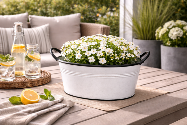 Mit einem Durchmesser von 23x18 cm und einer Höhe von 12 cm eignet sich die Schale ideal für kleinere Zimmerpflanzen, Kräuter oder dekorative Arrangements. Die seitlichen Metallgriffe mit einer Länge von ca. 4,5 cm sorgen nicht nur für eine ansprechende Optik, sondern erleichtern auch das Umstellen. Perfekt geeignet für Fensterbank, Regal, Sideboard oder Tischdekoration.