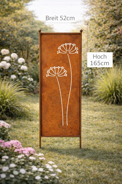 Edelrost ist ein natürlicher Korrosionsprozess von Metall, hier von Eisen. Unter Einwirkung von Luft und Feuchtigkeit verbinden sich die Eisen mit Sauerstoff zu dem braunen Überzug/Patina/Edelrost.