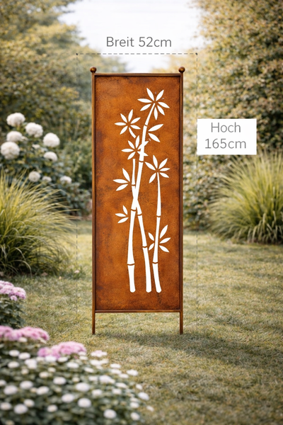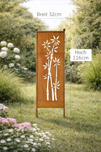 Im Garten, wo die Stelen der Witterung ausgeliefert sind, nimmt der Korrosionsprozess seinen natürlichen Verlauf und schreitet voran.