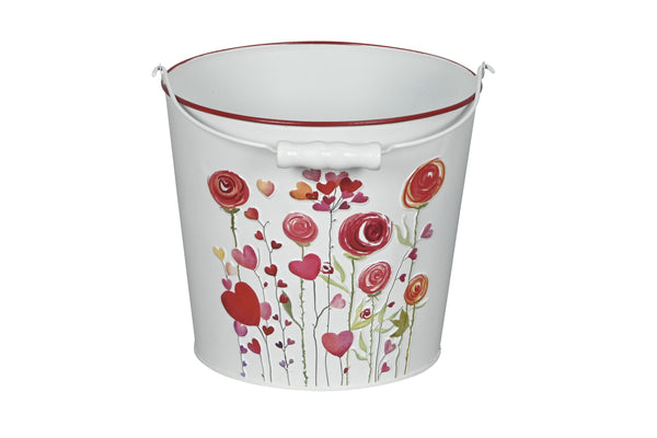 Metall-Eimer mit Henkel Ø15/17/19cm H13/15/17cm "Herz/Blumen" Vintage-Landhausstil für Pflanzen & Wohnaccessoires Übertopf 3Größen wählbar