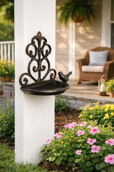 Eine sehr schöne Wand Vogeltränke aus Gusseisen, die sich sehr schnell in ihrer Gartenwelt ein dekorieren lässt.