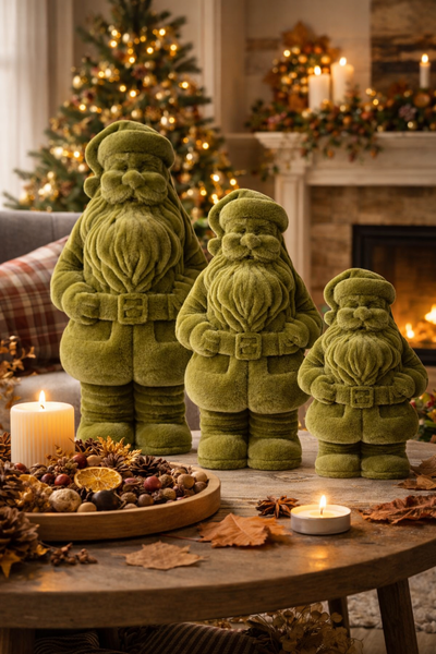 Dekorative ausgefallene Deko Santa aus Poly grün samtig beflockt